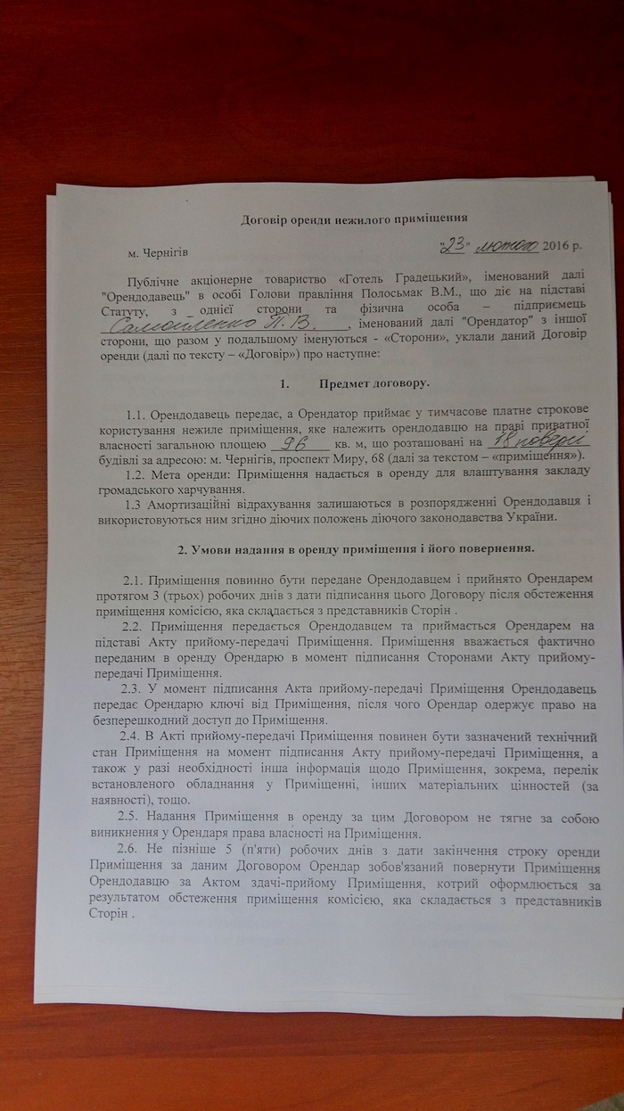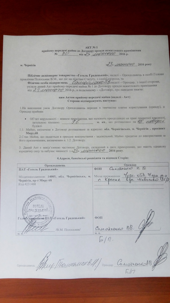 - С декабря месяца он не платил ни заработную плату своим сотрудникам ни арендную плату ни коммунальные платежи. То есть ему писали, писали, писали, в итоге в одностороннем порядке со стороны директора «Градецкого» был расторгнут договор аренды. И поскольку помещение освободилось и оно пустовало, Самойленко Павел, как ФОП, 23 февраля подписал договор аренды на это помещение – 18-й этаж, 96 квадратных метров. Завез туда свое оборудование, свои телевизоры, свою мебель, закупил продукты, получает сейчас лицензию на спиртное, уехал в Киев и уже туда ему позвонили соседи из Покер-клуба, что, мол, у вас открыты все двери и там проходной двор и помещение вскрыто.