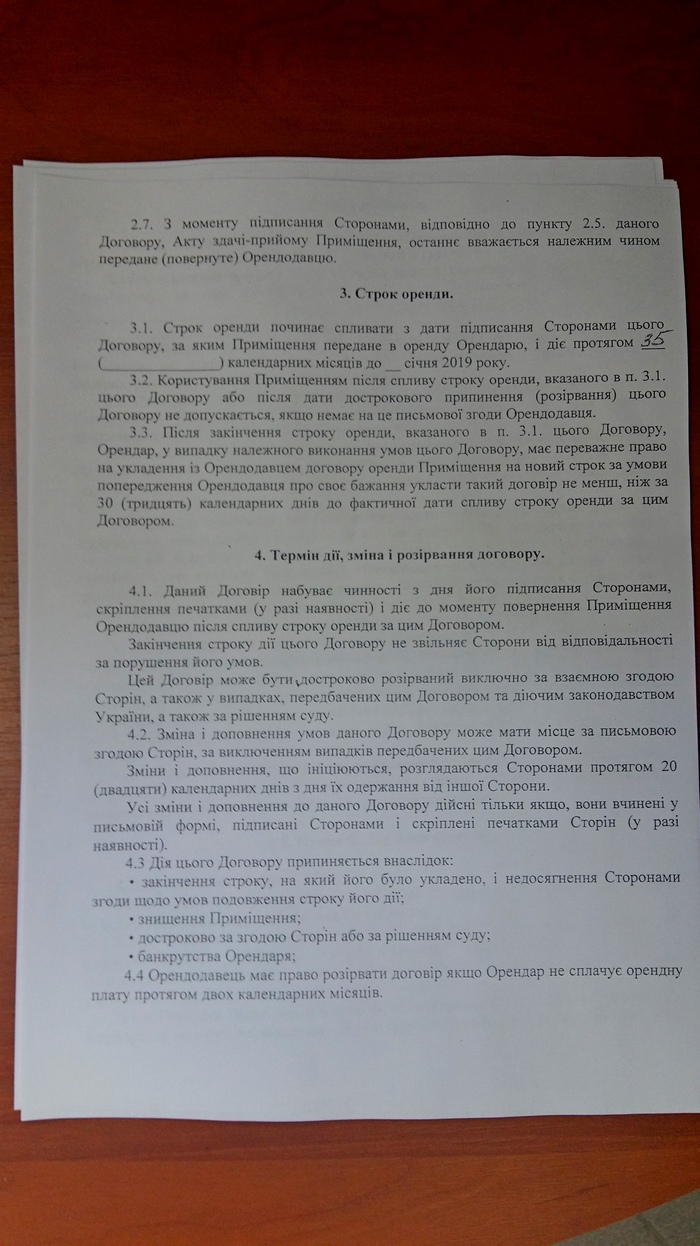 Договор аренды на 35 месяцев до 2019-го года