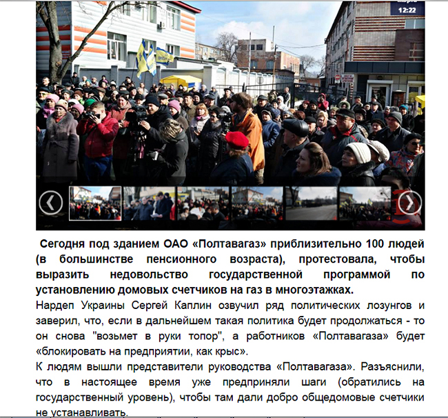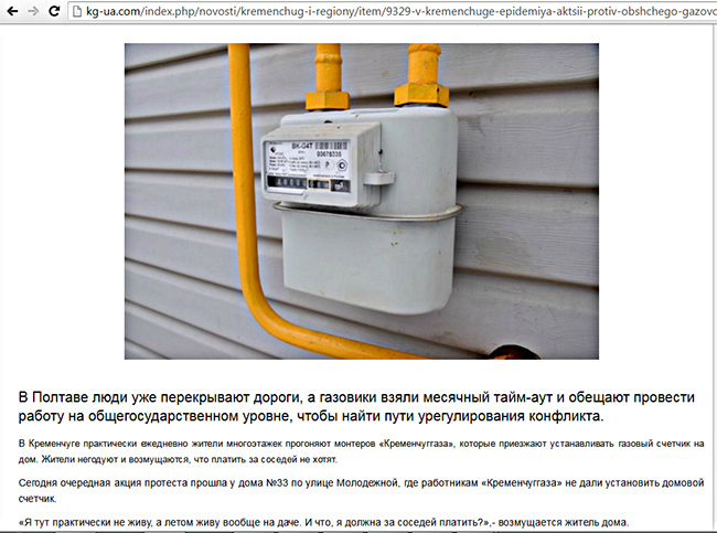 В Полтаве с таким подходом к вопросу мириться не стали. Проблема установления общедомовых счетчиков газа приобрела там широкую огласку. После того, как этот вопрос был вынесен на депутатскую комиссию, а 22 марта прошел митинг у стен ПАО «Полтавагаз», предприятие решило пойти на уступки и приостановило установку домовых счетчиков. В Кременчуге – аналогичная проблема. Люди просто прогоняют монтеров, приезжающих устанавливать счетчики газа в их домах.
