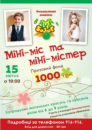 15.04.2016 года в 19:00 В РК "БАЗИС" состоится детский конкурс красоты и таланта "Мини-Мисс и Мини-Мистер" РК "БАЗИС".