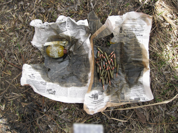В ходе реализации оперативной информации полиция обнаружила и изъяла из тайника в дереве гранату РГД-5 и 40 патронов различных калибров.