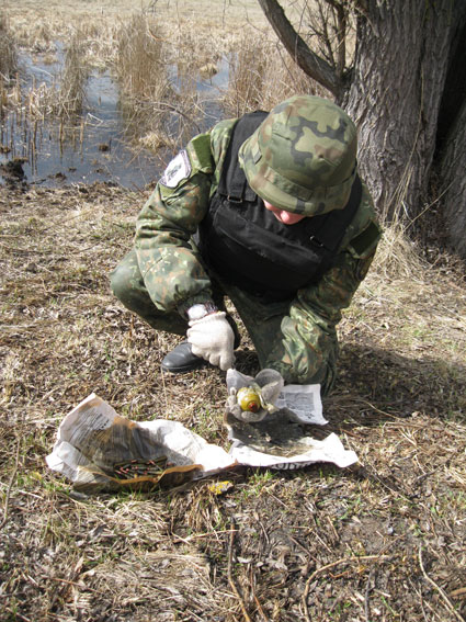 К указанному месту была направлена следственно-оперативная группа и взрывотехники. Правоохранители действительно обнаружили за лодочной станцией вблизи села Новоселовка Черниговского района спрятанный на дереве между ветвей бумажный сверток, в котором находилась граната РГД-5, 22 патрона калибра 5,45 мм и 18 патронов калибра 9мм.