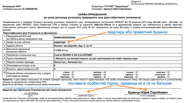 То, что заявление-присоединение не обязательно куда-то отправлять или даже подписывать, не означает, что с ним не следует самым тщательным образом ознакомиться. Заявление-присоединение – документ, в котором указано, сколько газа и на каких условиях вы будете получать.