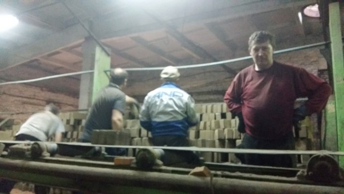 Добираются до завода рабочие кто как – кто-то приезжает на велосипедах, кто-то добирается маршруткой из районов, специальной развозки нет. Как сообщили нам сотрудники, работа считается не престижной, несмотря на довольно высокую по местным меркам зарплату в 4168 гривен (в среднем, оплата труда бригадно-коллективная по бригадному подряду ), молодежь долго не выдерживает, поэтому на предприятии - текучка. Работают круглые сутки по скользящему графику, в три смены. Технологический цех по выработке кирпича – бесперебойное производство, должен поддерживаться надлежащий температурный режим. Выходных фактически нет.