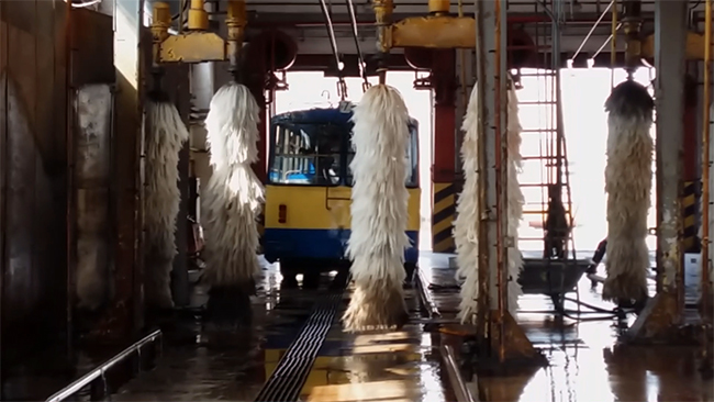 Изменение, на которое мы обратили внимание придя в КП «Черниговское троллейбусное управление» – усиление пропускного режима. Теперь, чтобы попасть на предприятие, необходимо было выписать пропуск у охранника на входе со стороны ул. Менделеева. Второе, чего нельзя было не заметить – троллейбус, стоящий на мойке. Несколько лет подряд до этого мы пытались увидеть такое чудо – не получалось. Но мойке «рогатых» просто экономили, а троллейбусы ходили с черными от угольной пыли стеклами, въевшейся в них на десятки лет эксплуатации.