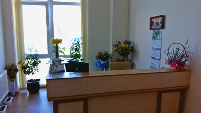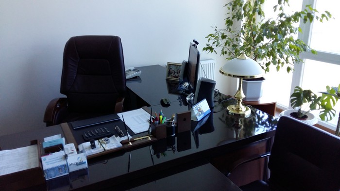 Кабинет главного босса достаточно консервативен и традиционен, как и положено для мужчины его возраста. В прихожей – рецепшен с секретарем, чье рабочее место уставлено цветами в кадках, а в вазе радует глаз букет желтых свежесрезанных нарциссов. На табличке темно-синего цвета в золотом обрамлении – выбиты должность и имя управляющего.