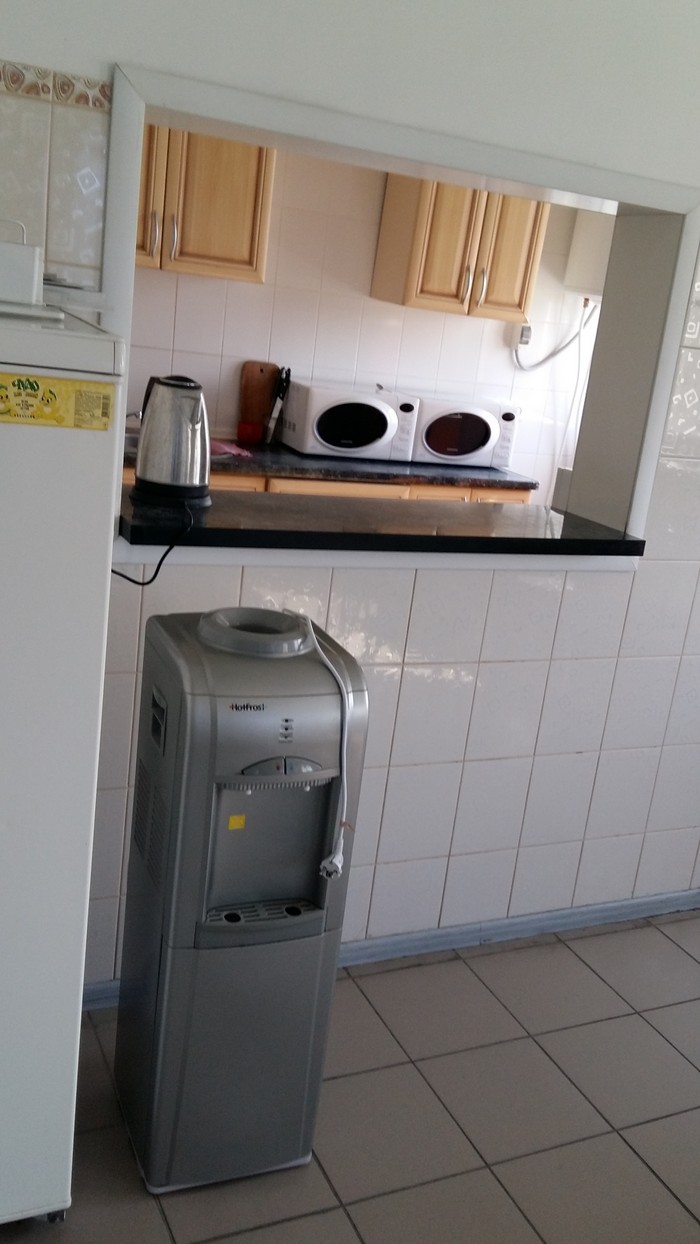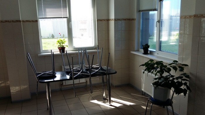 Дальше мы пошли смотреть рабочие места сотрудников отделов и складов. Есть на фирме и столовая, где стоят столики, холодильник и 2 микроволновки, кулер с водой. Каждый приходит со своим, так как работа посменная и организовывать работу поваров круглосуточно – невозможно. Зато есть вечернее такси (после 11 вечера), которое оплачивает сотрудникам фирма. Курят здесь только во время перерыва, но руководство негативно относится к такой вредной привычке.