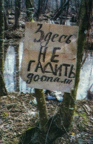 Это популярное направление уличного искусства в райцентре отличается тем, что на стволах деревьев красуются не вязаные из цветной пряжи «одёжки», а плакаты с надписями: «Достало!», «Имейте совесть!». Местные активисты развесили их вдоль дороги к городскому пляжу.