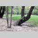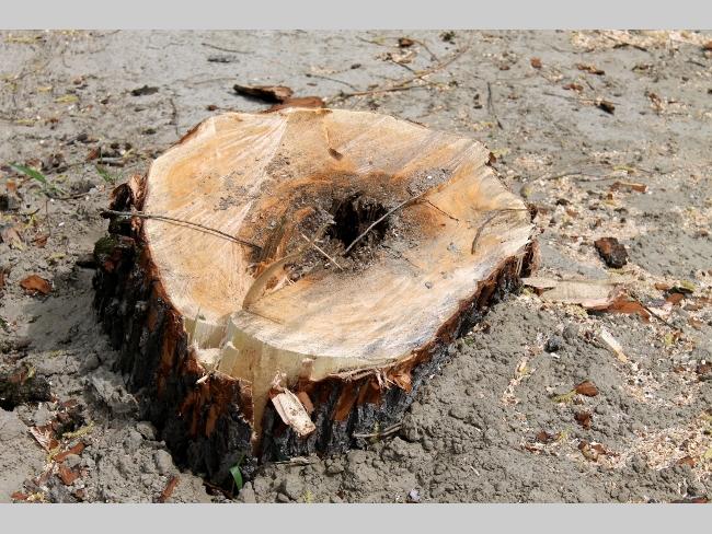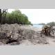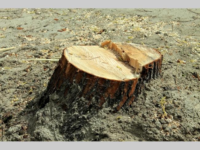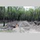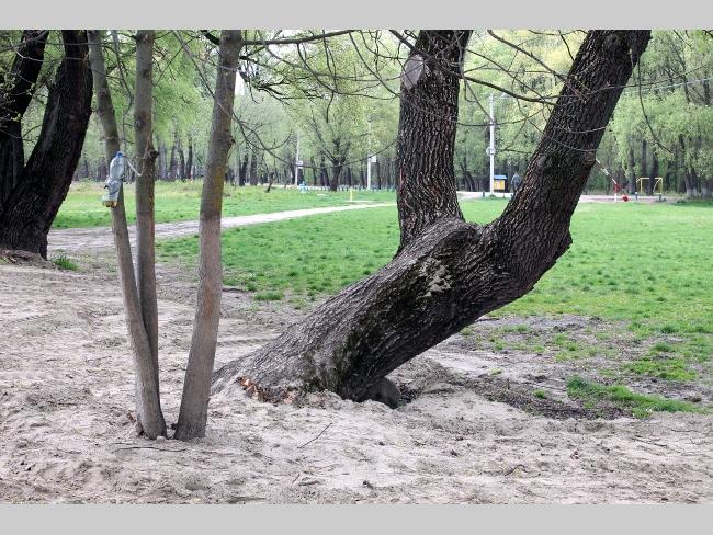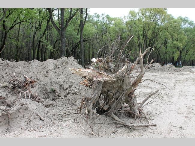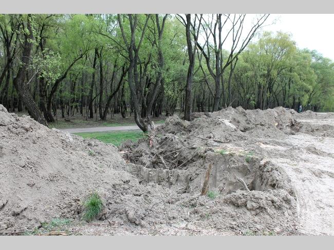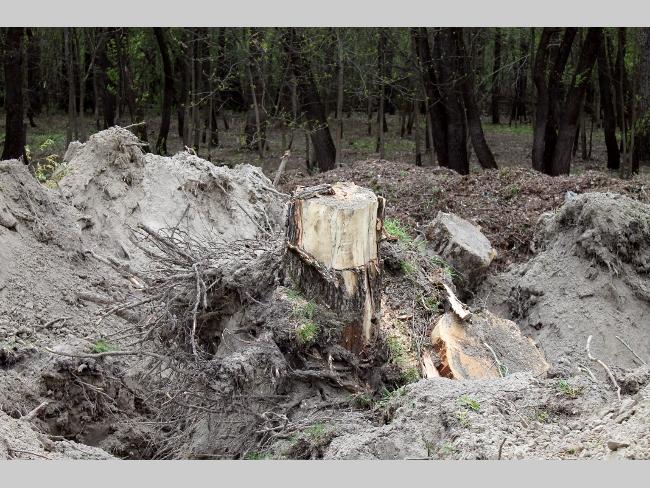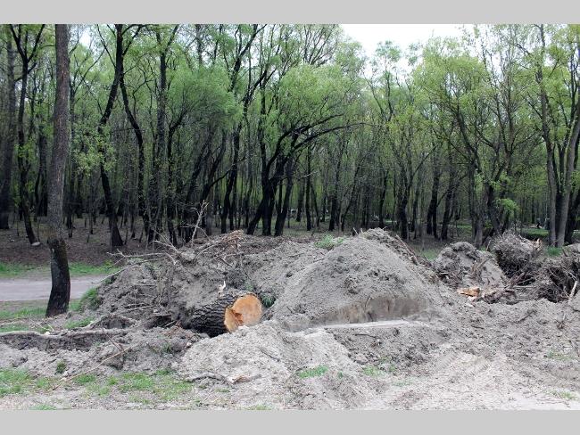 А что на самом пляже? Здесь картина напоминала полигон послевоенных действий. Глубокие рытвины, как от снарядов, в них остатки спиленных и выкорчеванных деревьев. Работы по вырубке зеленой зоны не ведутся, лишь на краю пляжа, одинокий экскаватор лениво шевелил ковшом.