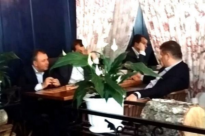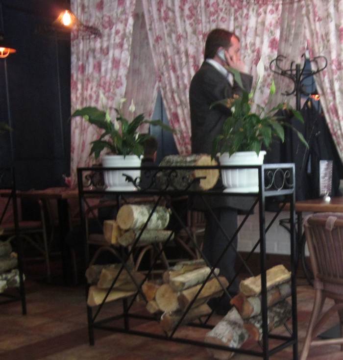 Заказ обещали принести в течение 10 минут. Пока мы сидели в ожидании, и рассматривали интерьер, на пороге заведения возникли секретарь Черниговского горсовета Виктор Быстров, депутат горсовета Олег Шеремет (выдвигался от партии «Оппозиционный блок» - экс-секретарь горсовета во времена мэра Соколова), и бывший юрист горсовета Павел Вовк.