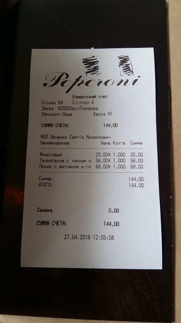 Мы попросили принести официантку счёт, он составил 144 грн. К слову, пока мы 2 часа изучали новое заведение, гостей прибавилось и к 15.00 многие столики были заняты.