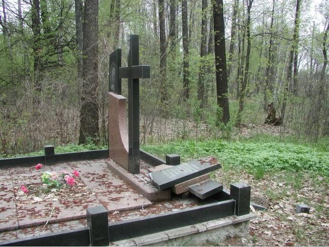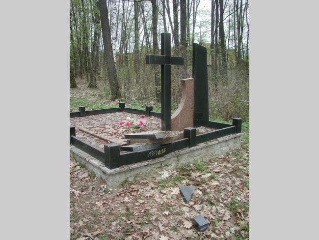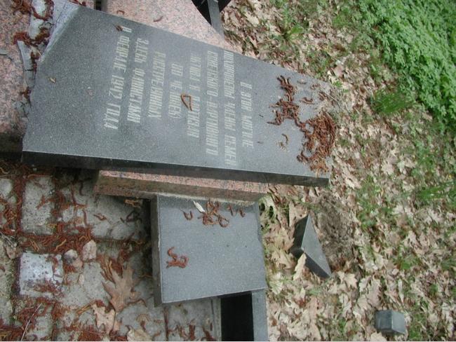 В конце апреля местные жители обнаружили, что одна из плит, лежавших на могиле (на ней высечена информация о погибших), треснула в трёх местах, а рядом разбросаны части надгробия, на котором она была установлена.