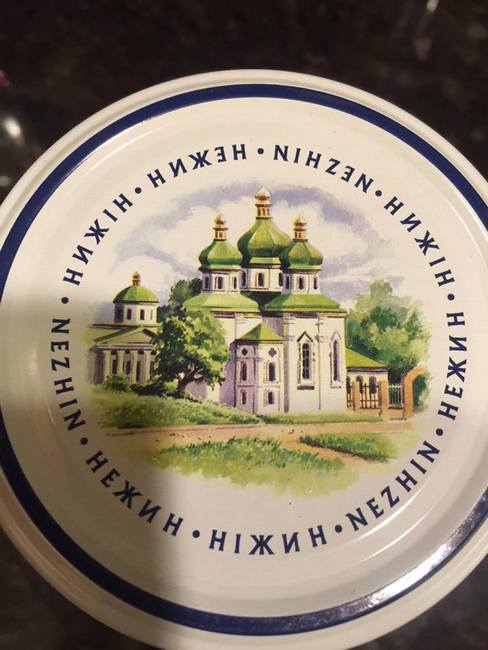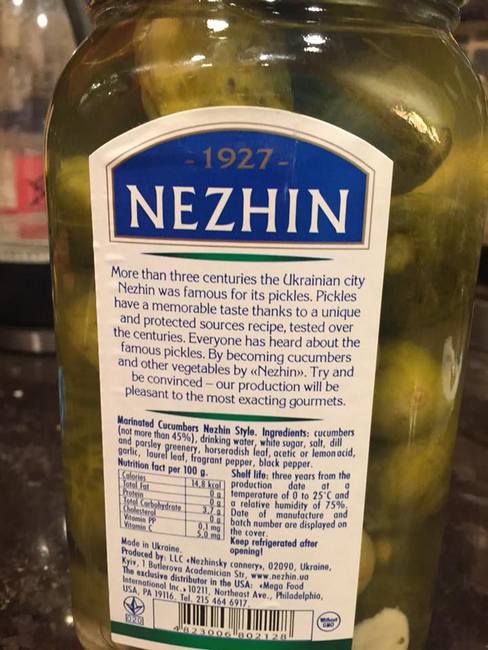 28 квітня на своїй сторінці у мережі «Фейсбук» Мирослава написала: «Не уявляєте, як приємно купувати таке на Вашингтонщині за рогом хати». І виставила дві фотографії баночки з солоними огірками під торговою маркою «Ніжин», такі є і в наших супермаркетах (на одній фотографії етикетка лицьова, на іншій — зворотна).