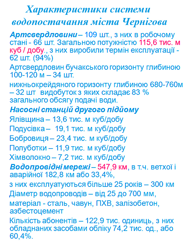 – Обновление водопроводной сети Чернигова является приоритетной задачей предприятия и направлено на повышение качества водоснабжения. Одним из пунктов инвестиционной программы КП «Черниговводоканал» на 2016 год, является проведение реконструкции водопровода по ул. Гагарина, от ул. Пашина (Беспалого) до ул. Костомаровская (Чапаева). Эта часть водопровода построена еще в 1960 из чугунных труб и является аварийной. Трубопровод проложен по проезжей части улицы. Увеличение интенсивности движения грузовых автомобилей привело к оползням, что стало причиной образования трещин и переломов на стыках трубопровода. Аварийные ситуации, которые возникали на трубопроводе (только 2015 год их было две) приводили к утечке воды, временному отключению от водоснабжения 267 жилых домов частного сектора и санатория «Дружба». После выполнения ремонтов осуществлялась дезинфекция и промывка трубопровода, восстановление асфальтобетонного покрытия. Расхода материалов и горюче-смазочных материалов на ликвидацию аварийных повреждений в 2015 году составили более 30 тыс грн. После выполнения работ по замене данного участка водопровода потери воды ориентировочно уменьшатся на 12,5 тыс м3/год, или 48 тыс грн/год.
