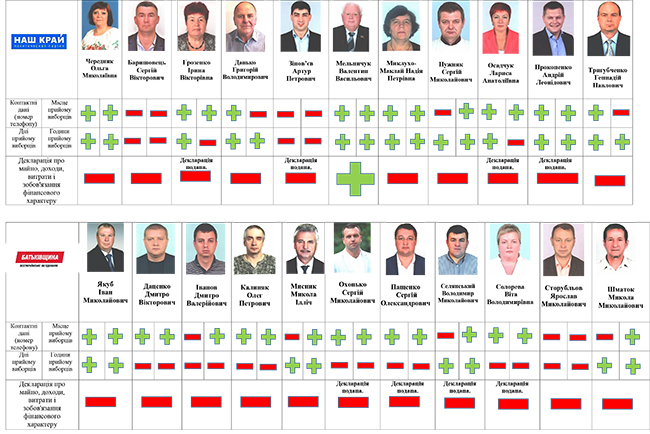 Только один депутат из «Укропа» указал свой номер телефона и одна депутат из «Оппозиционного блока» сообщила номер телефона и место приема избирателей. Остальные депутаты из вышеназванных фракций, по мнению Гашпара, считают это необязательным. При анализе открытости, «минус» ставился и в том случае, если депутат, как место приема граждан указывал только населенный пункт и номер телефона.