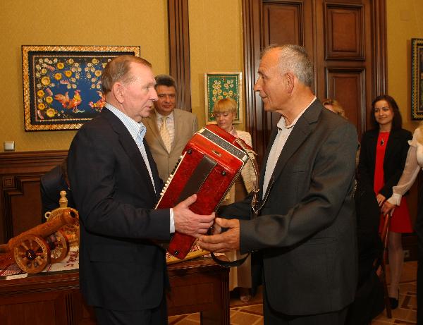 Леонід Кучма, колишній (другий) президент України, шостого травня в Києві подарував жителям Семенівки баян. Для цього до столиці приїхали заступник голови Семенівської районної організації ветеранів Василь Гончаренко та член хору ветеранів Микола Островерхов. Чому Леонід Данилович подарував не гітару, на якій грає сам?