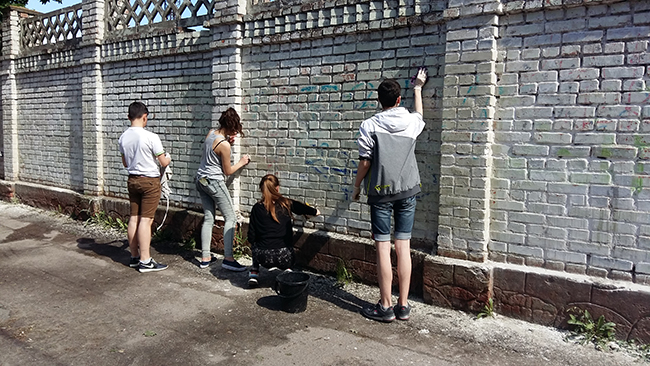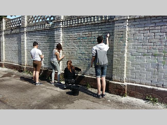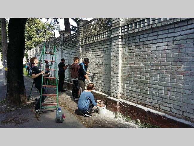 Просто нельзя было не обратить внимания на несколько десятков молодых людей, которые 24 мая активно числили, отмывали и грунтовали забор стадиона им. Ю. Гагарина в Чернигове. Как оказалось, старт преображению давно некрашеного и безликого забора на центральной магистрали Чернигова дало эссе, написанное ученицей 8-В класса гимназии №31 Маргаритой Плахутой.