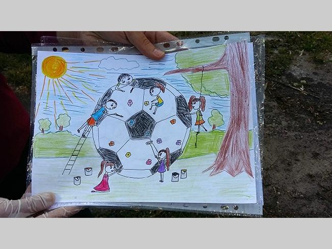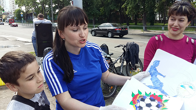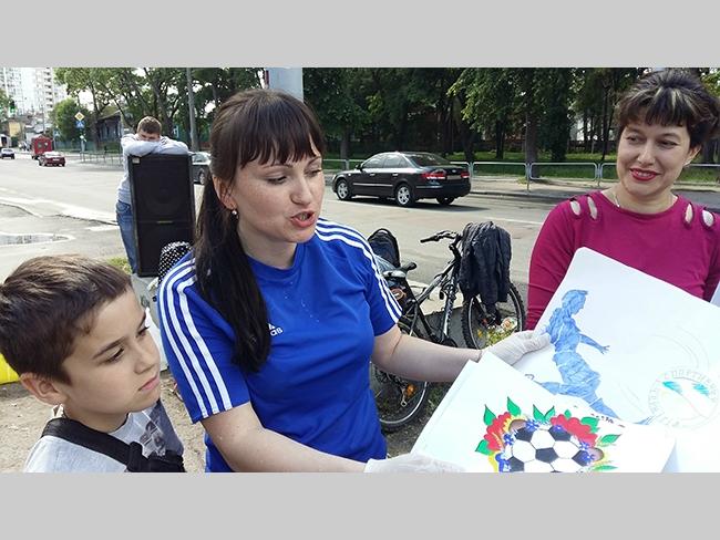 – При раскраске забора работы победителей конкурса рисунка копироваться не будут, а будет браться сама идея рисунка. Завтра к нам приедут художники из Городнянской школы искусств и после награждения победителей конкурса рисунка, которое состоится на стадионе в 10 часов утра, начнется работа по оформлению забора. В качестве художников будут работать 2 учителя и четыре выпускницы школы искусств, – рассказывает кандидат педагогических наук, старший преподаватель кафедры социальной работы Черниговского национального технологического университета Татьяна Децюк. – Такие проекты, как этот, направлены на объединение людей вокруг определённой проблемы. И, как видите, поставленной цели мы достигли: над оформлением забора работают и футбольные фанаты, и студенты университета, и ученики черниговских школ.
