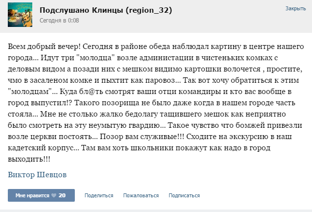 Также в статье цитируются слова главы Клинцовской городской администрации Сергея Евтеева: Несколько лет назад, в 2011 году, было принято неправильное решение о закрытии воинской части в городе Клинцы. Сейчас эта ошибка исправляется.