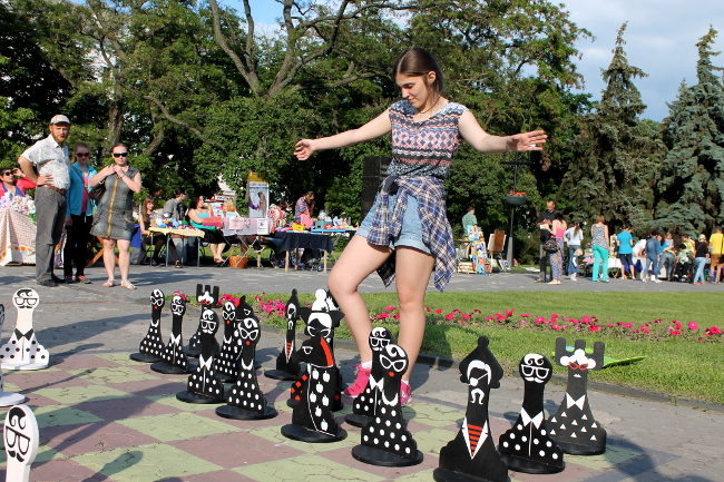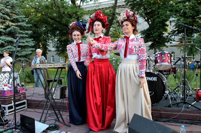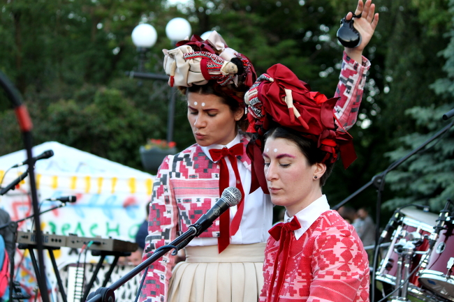 Как и анонсировали организаторы, на Зеленой Сцене было все: ярмарка хенд-мейд, мастер-классы, появились большие шахматы и фотовыставка Александра Навроцкого, которая своими необычными ракурсами переносит зрителя в другую реальность. Но это пока на сцене не появились три девчонки в оригинальных нарядах. А когда они извлекли из своих экзотических инструментов первые звуки – слушатели были покорены. Многие из местных меломанов даже не слышали о группе Panivalkova, но думаю их выступление на Зеленой сцене запомнится им надолго.