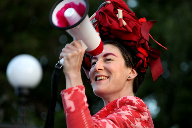 Panivalkova – это две Ирины и Даша. Даша Пугачева – барабанщица, которая периодически подпевает подругам, а Ира Лузина и Ира Кульшенко – поют, играют на клавишных и еще бог знает на каких инструментах. Они с собой их возят целый чемодан. Тут и непривычные для черниговского слушателя кастаньеты, штуковины типа вибраслепа, свистки и даже обыкновенные ключи. Но главное в их выступлении – огромная харизма и непосредственность. Какой-то эмоциональный заряд идет от этого трио, и с первой же песни слушатели были покорены.