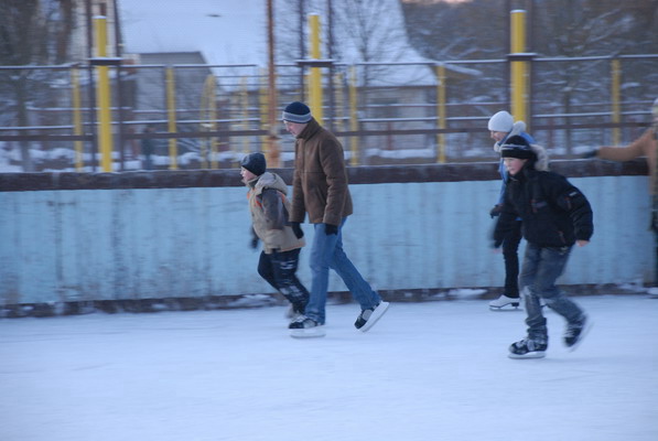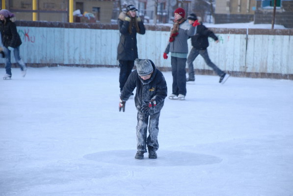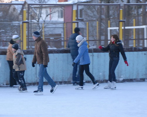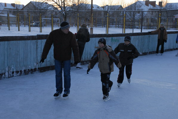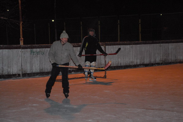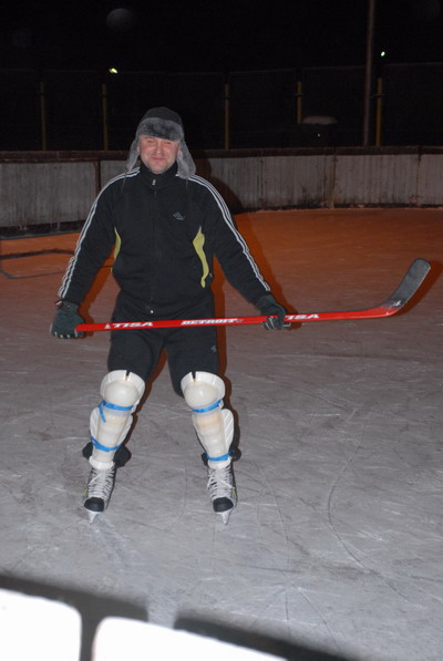 Эта встреча произошла на ледовой площадке возле бассейна «Дельфин». Канун Рождества, 8 часов вечера, на площадке идут жаркие баталии хоккеистов-любителей. В перерыве прошу одного из игроков рассказать о том, что происходит на льду. Игорь Волков, так зовут моего собеседника, представляет своих товарищей по игре. Игорь и Виктор Тарасевичи — отец и сын. Оба на коньках с детства.