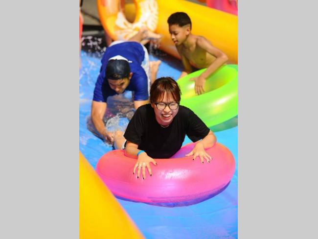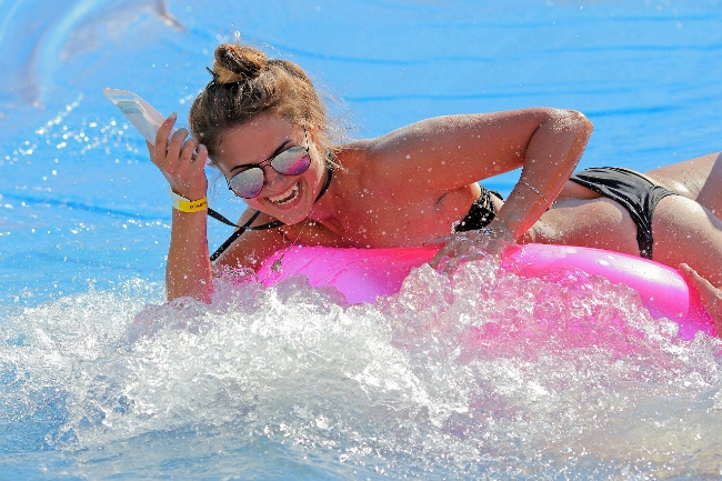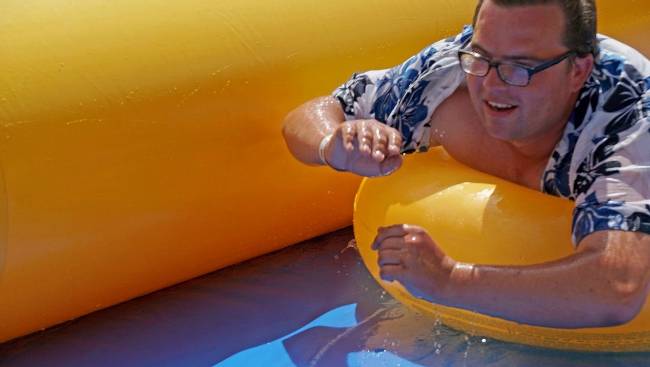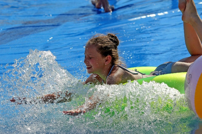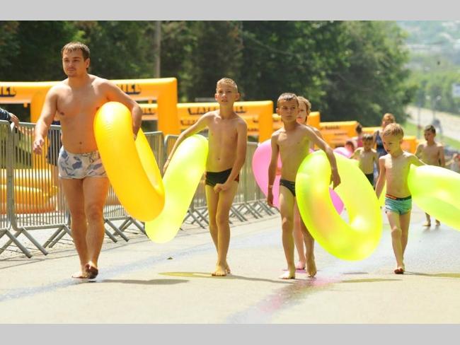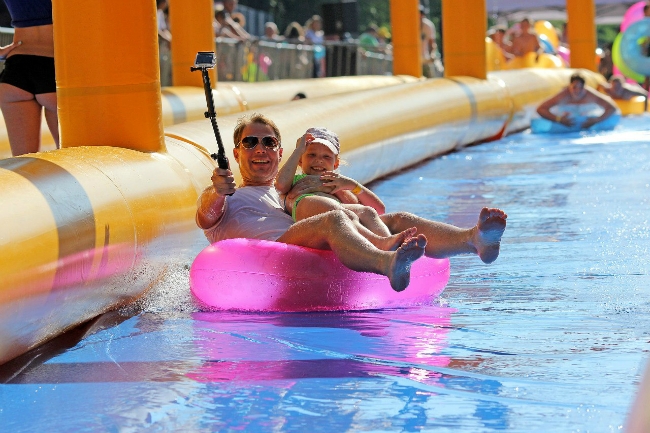 Для того, чтобы прокатиться, гости мероприятия могут взять надувные круги в аренду или принести их с собой.