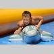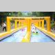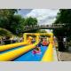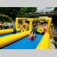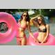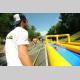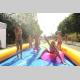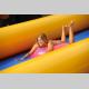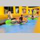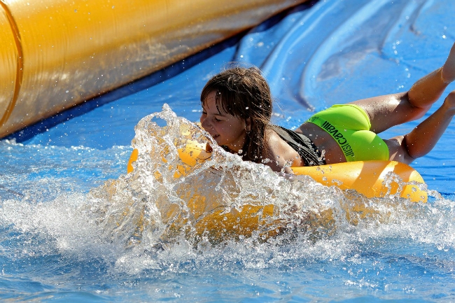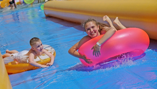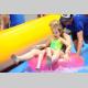 Развлекательный спуск включает в себя две трассы, общей шириной 6 метров, напор воды создает эффект скольжения, а мягкая подложка защитит всех участников от падений.