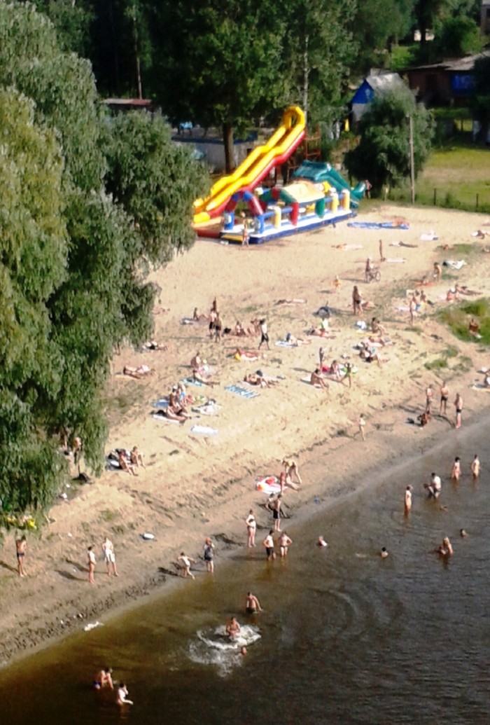 На этот пляж мы ходим, во-первых, потому, что сюда нам удобно добираться. Во-вторых, здесь песок и батуты, которые любит мой сын. Можно поиграть в волейбол, футбол. Вода в Десне, на мой взгляд, чистая. На речку летом ходим каждый день, если погода позволяет. На пляже есть небольшой павильон, в котором всегда можно купить напитки, мороженое, чипсы, орешки и т.п. Единственный не очень приятный момент – отсутствие туалета. Оценка пляжа по пятибалльной шкале: 4.
