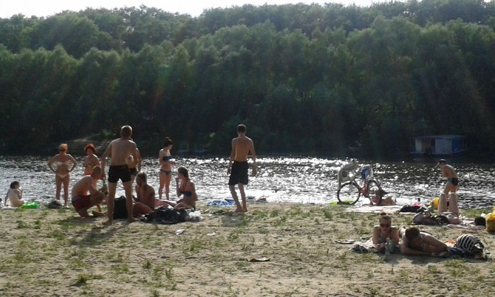 В связи с этим, мы решили начать серию пляжных репортажей, и хоть сегодня ливень разогнал всех пляжников, вчера, 21 июня, мы успели побывать на диком пляже, который находится по правую сторону от пешеходного моста, рядом с базой отдыха «Химики».