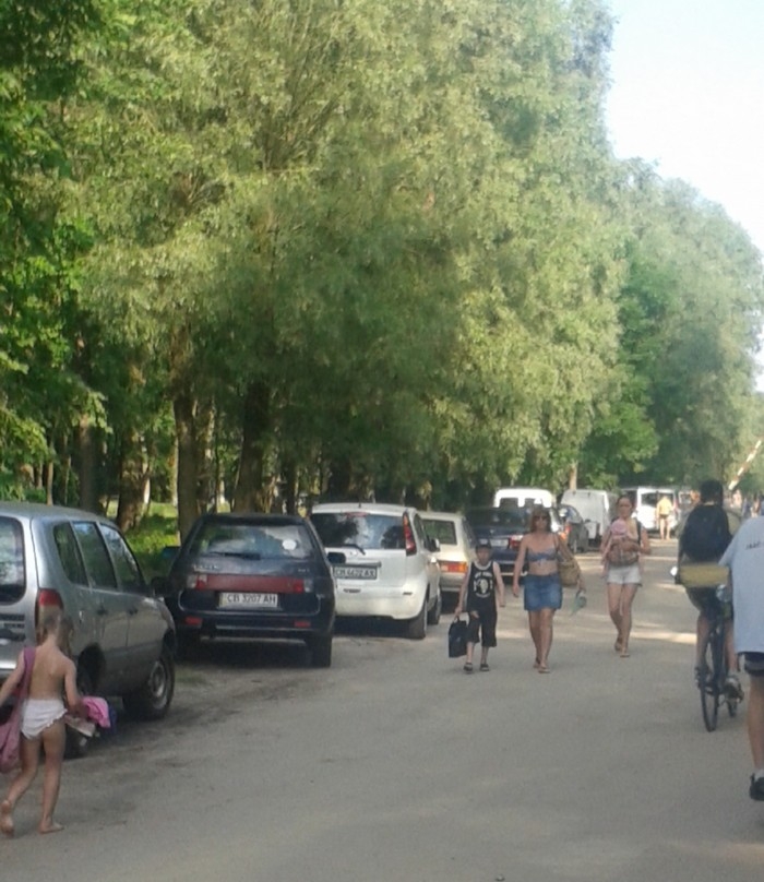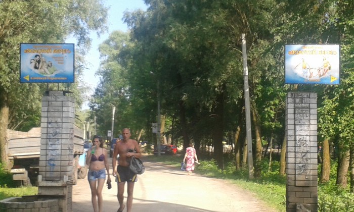 До пляжа можно добраться тремя путями: из Горсада, от Вала, спустившись вниз, и от Красного моста мимо Стрижня, мимо педовских общежитий и кафе «Калыба». Мы выбрали путь от Красного моста. По асфальтированной дороге до пляжа можно доехать на автомобиле, велосипеде или дойти пешком. Вход на пляж остался прежним. Но изменения видны сразу.