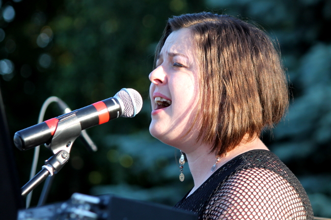 Конечно, помимо концерта, посетителей ожидал весь арсенал мероприятий проекта «Зеленая сцена»: аллея хенд-мейд мастеров, где гости города с удовольствием приобретают сувениры, большие шахматные фигуры, которые так любит переставлять детвора, а при первых же звуках доносящихся со сцены они первыми заполняют VIP-зону, и скачут там до упаду. На детской площадке студия «А-соль» представила новый проект «Бумажные фантазии». Соорудив подиум из бумаги, детвора облачившись в одежду сказочных героев, тоже из бумаги, гордо вышагивали по импровизированному подиуму. Привлекала внимание и выставка картин Сергея Тонканова. Сергей – художник, который только начинает проявлять свой настоящий потенциал. В своих работах ему удается каким-то образом объединить реальность и мифические образы. А когда солнце уже стало клониться к закату, на сцену вышла группа «Материя».