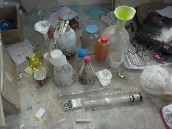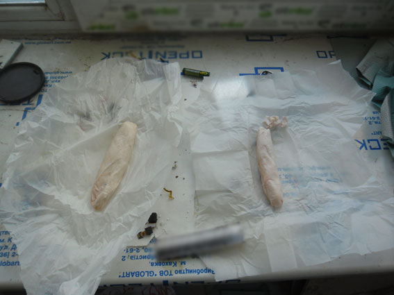 Также изъята лабораторная посуда и емкости для изготовления наркотика, электронные весы, 25 литров прекурсоров, оцениваемые в 2500 гривен, а также высушенные растения конопли и готовую к употреблению марихуану общим весом около 10 килограммов, стоимость которой по ценам «черного рынка» составляет около 300 тысяч гривен. Изъятый амфетамин и марихуана оцениваются почти в 400 тысяч гривен.