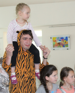 Так і було: Панда з Тигром читали реп і загадували загадки, Жирафа тренувала дітям дрібну моторику пальчиків, Зебра формувала логічне мислення на зачаклованих казках. Вовк-баяніст причарував конкурсом «вгадай мелодію», в якому дружно змагався увесь зал. Мавпа веселила дітей пантомімічними загадками про звірів. А щодо Лева і Пантери, то від них діти довідалися про традиційні українські музичні інструменти та зіграли у гру «оркестр» під живий супровід гітари. Були навіть екологічні естафети від двох подружок – Корівки і Сонечка. Коли всі насміялися та наспівалися, виявилося, що звірі випередили піратів і скарб вже знайдено. Саме про розв’язку і її арт-терапевтичний ефект ми спитали у художнього керівника театру доцента кафедри філософії та культурології ЧНПУ ім. Т.Г. Шевченка Марину Каранду.