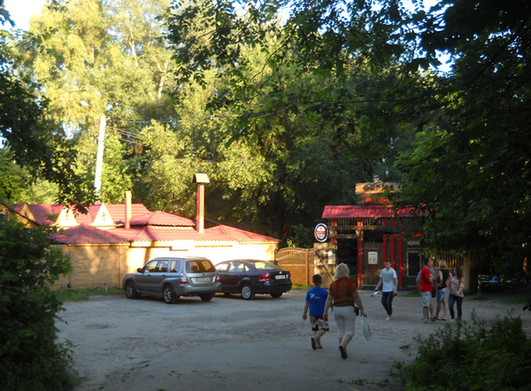 Через метров 200 за Парк-отелем, встречаешь добротный двор кафе «Ферма» с надёжными воротами, крепкими на вид постройками для отдыха посетителей и стойким запахом кострового дыма, подсознательно – шашлыка.