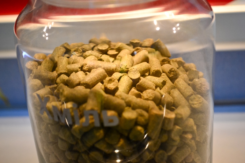 Оказывается солод – это тот же ячмень, но пророщенный: когда ростки достигают определенной длины их сбивают, а зерна используют для производства пива. Если ячмень сам по себе твердый и раскусить его тяжело, то пророщенное зерно по твердости напоминает обыкновенные семечки с приятным сладким вкусом. По словам работников завода, ячмень на заводе используется украинский. А вот с хмелем немного другая история: его везут из-за границы, из Германии, в гранулах. Но основа для них, то есть сами шишки хмеля, могут быть как украинского, так и европейского происхождения. И, наконец, пектин, который используется в изготовлении некоторых сортов пива – это всего лишь выжимка из яблок, то, что остается от них после выдавливания сока. Запах у этого вещества соответствующий – как у сухофруктов.