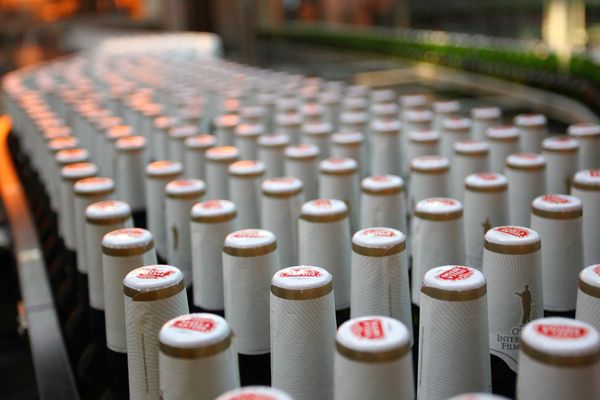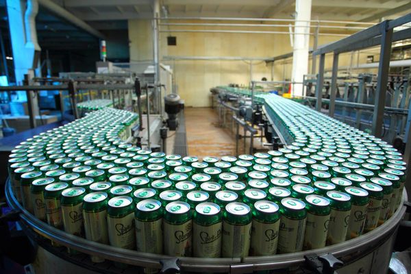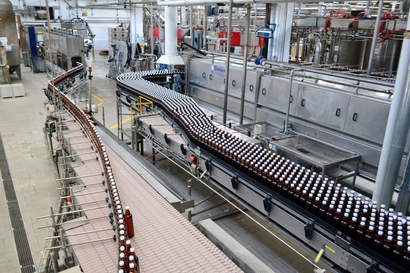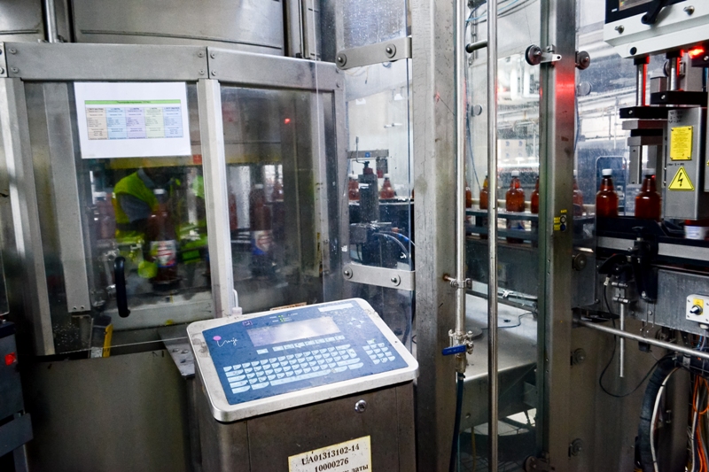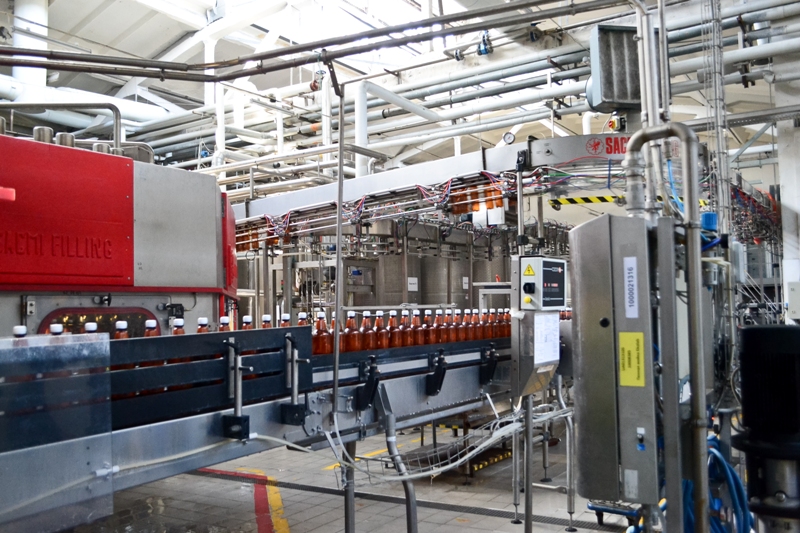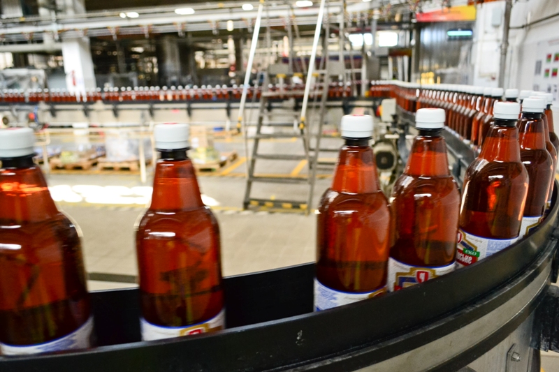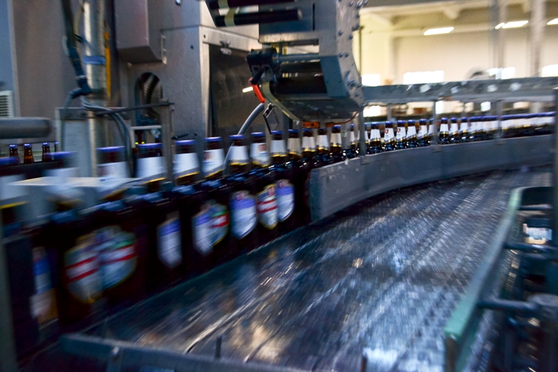 Подобным образом наполняются и стеклянные бутылки. Их конвейер немного дальше. Линии, где разливают пиво в банки и в кеги в этот день (или, возможно, в часы) как раз стояли, и увидеть этот процесс не удалось. По моему мнению, это зрелище самое интересное на производстве, хотя и далеко не главное.