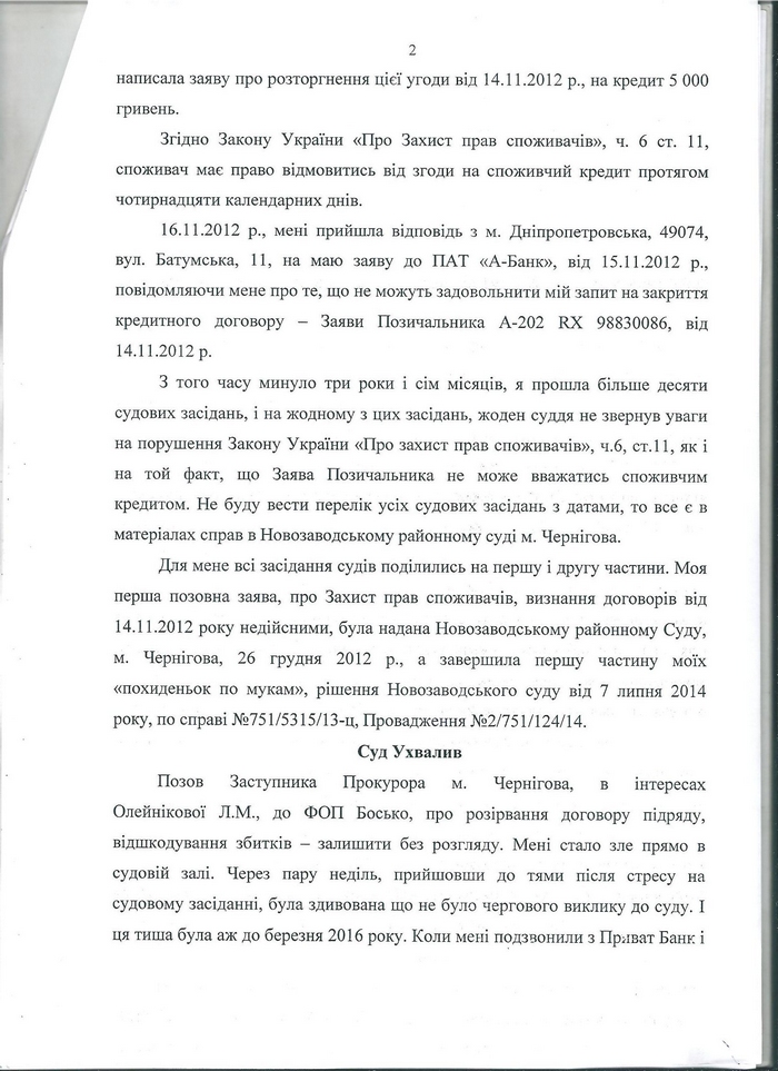 7-го июня 2016-го Олейникова обратилась к главному прокурору Чернигова - Розинке Сергею Александровичу.