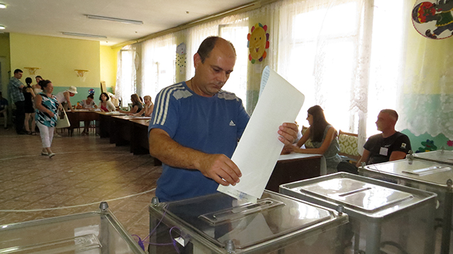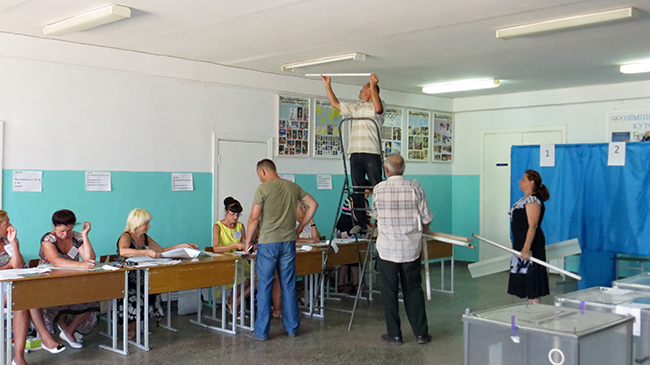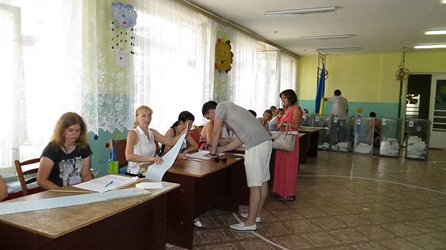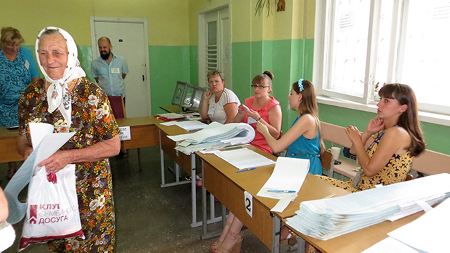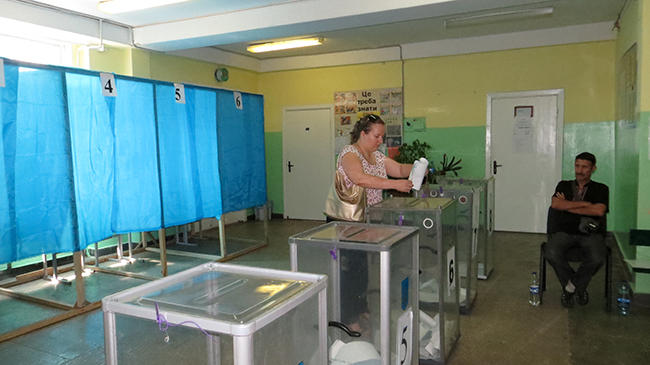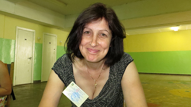 – Явка избирателей очень низкая – 9%. К нам на участок «попали» пограничники из части, которая находится на Масанах. Людей, вроде бы и много, но те люди, которые приписаны к части, скорее всего, голосовать не придут, поскольку проживают на в районе Масанов и, кроме того, многие из них находятся на выезде, дежурстве и зоне АТО. Так что явку нам немного «подпортили». Открылся участок вовремя. Работаем без нарушений. Отсутствует один член комиссии и связи с ним нет, поэтому причины отсутствия сказать не могу. У нас очень большой наплыв избирателей был с утра. Сейчас – пик жары и людей стало меньше. Думаю, что вечером также количество избирателей увеличится. В основном, голосуют от 40 и старше.