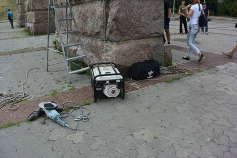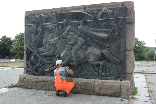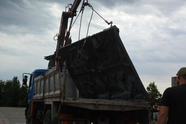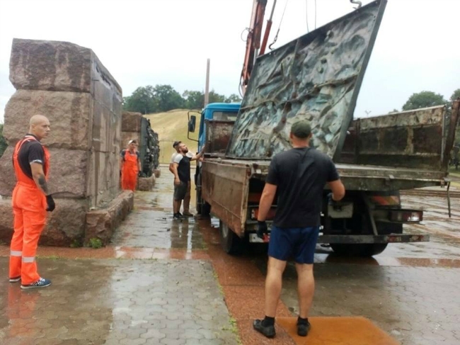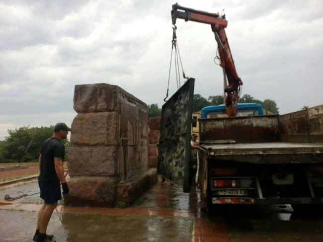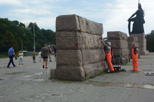 Сегодня, 18 июля демонтаж барельефов был вновь возобновлен. Фото Виталия Назаренко.