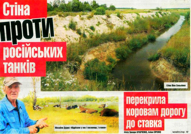 — Стіна тягнеться до самої Липівки (село Гірської сільради Сновського району), — киває у бік насипу 51-річна Тамара Дудко. — За стіною — наша земля, паї. Ставок був хороший. З нього корови пили. Тепер там пасти — не можна, пити худобі — не можна. Не перейдеш. Погранці та митники обіцяли: зробимо прогін, щоб люди корів ганяли. Ждемо досі. Пасемо на голитьбі. Замість ставка весною цього року зробили нам канавку маленьку: поїть.