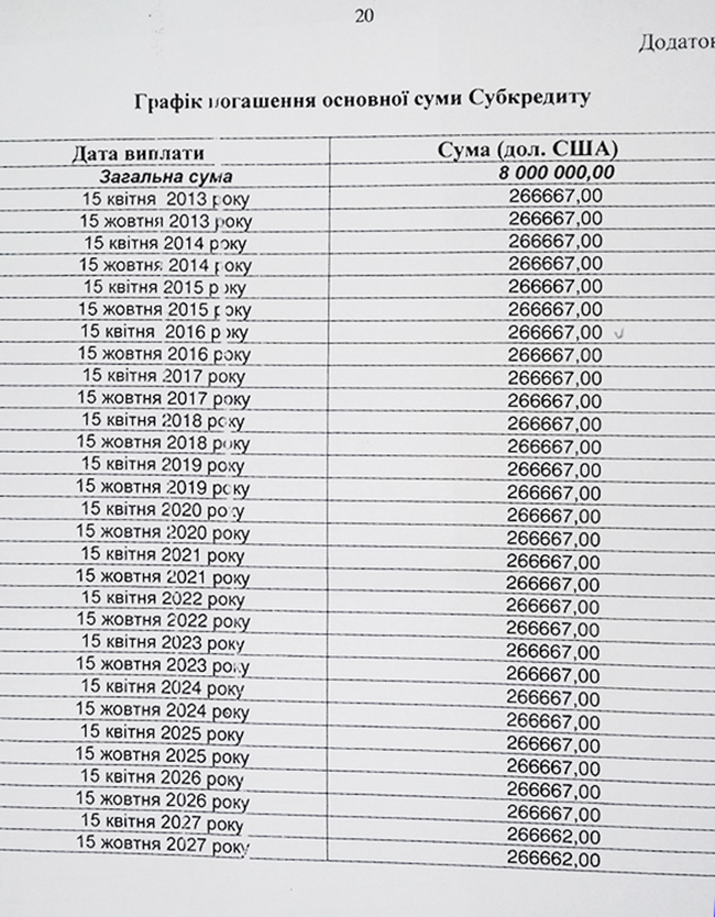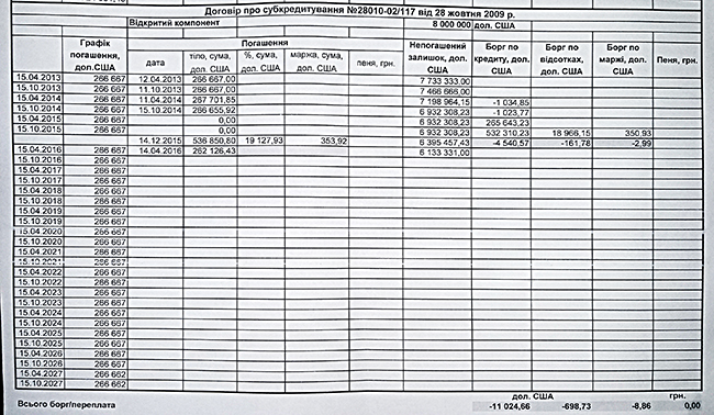 Суммарно, с 2013 года по первому кредиту было погашено $1 289 000 и проценты – $214 900. По второму кредиту – $1 067 700 и проценты – $160 100.