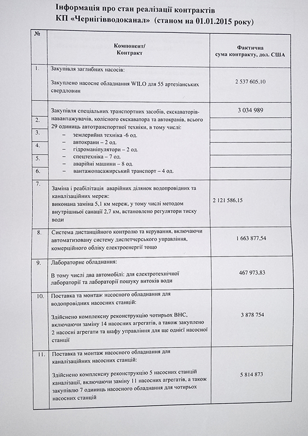 Итак, КП «Черниговводоканал» в соответствии с Соглашением о займе между Украиной и Международным банком реконструкции и развития 26 мая 2008 года (Соглашение ратифицировано Законом №592-VI от 24.09.2008) стало участником проекта «Развитие городской инфраструктуры».