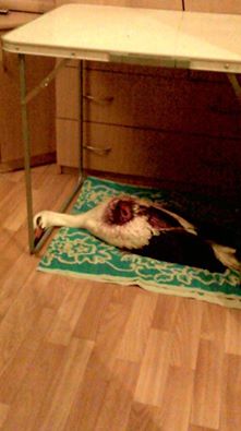 На следующий день аиста в лесопосадке на Подусовке, как поворачивать с ул. Попова на Кольцевую, нашла жительница Чернигова, что выгуливала там собаку. Аист сидел в кустах и не двигался, когда его там оставили – неизвестно. По вызову неравнодушной горожанки выехала руководитель Зоошанса Марина Николаевна Постол и отвезла горемыку в клинику МЕД. У него полностью вывернуто крыло, его необходимо ампутировать, но даже если бы рана была легче, он все равно бы не летал, так как для птиц такая рана все равно приводит к инвалидности. Если птица выживет, ее необходимо будет куда-то пристроить.