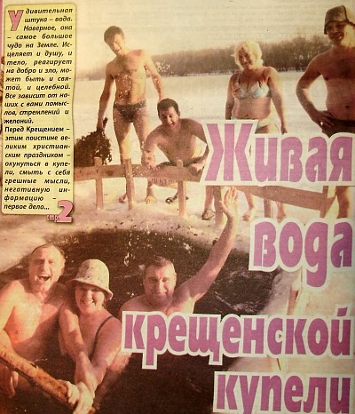 Удивительная штука - вода. Наверное, она - самое большое чудо на Земле. Исцеляет и душу, и тело, реагирует на добро и зло, может быть и святой и целебной. Все зависит от наших с вами помыслов, стремлений и желаний. Перед Крещением - этим поиситине великим христианским праздником - окунуться в купели, смыть с себя грешные мысли, негативную информацию - первое дело...