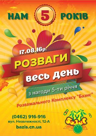 Развлекательный Комплекс «БАЗИС» отмечает свой пятый день рождения и приглашает друзей