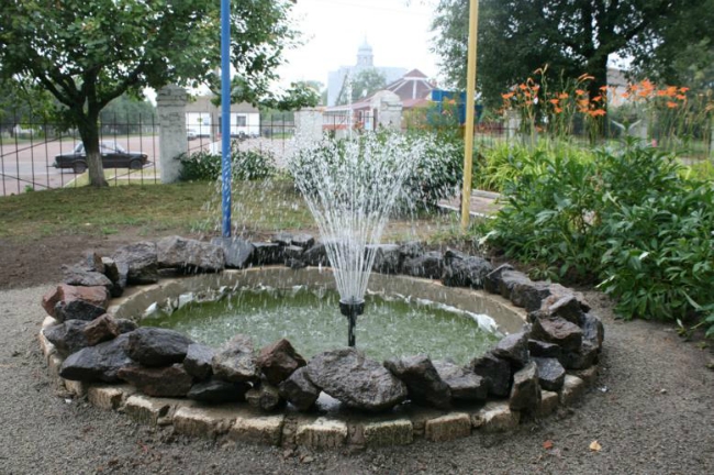 — И того и другого понадобилось немного, — рассказывает ведущий инспектор районного сектора Юрий Авраменко. — По подсказке из Интернета мы выкопали яму, забросили туда старый скат от трактора, забетонировали дно, застелили его агропленкой, чтобы вода не вытекала, обложили огнестойким кирпичом, а сверху декорировали камнями. Для перекачивания воды установили насос.