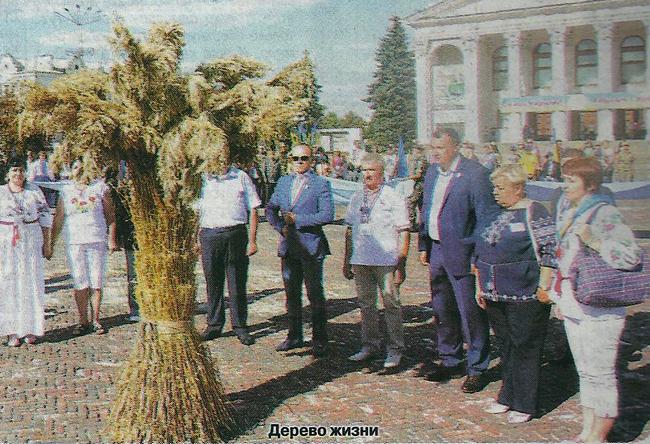 Продолжилось мероприятие на Красной площади минутой молчания и освящением обновленной мемориальной стелы героям АТО. Главным символом мероприятия стало Дерево жизни из колосков ржи и пшеницы, привезенных со всех регионов страны, — национальный земледельческий оберег из самого лучшего животворного урожая, в котором заключена энергия поля, тепло солнца и сила Матери-Земли. Именно вокруг него, взявшись за руки, члены семей погибших, волонтеры, представители власти и все небезразличные люди живой цепочкой составили на Красной площади контур Украины.