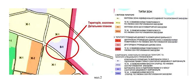 Общественный активист считает, что согласно Генеральному плану, территория, по которой разрабатывался Детальный план, относится к территориям сельскохозяйственного производства и территорий коммунальных предприятий (рис.1). При этом какие-либо изменения и дополнения по определению другого функционального назначения указанной территории в Генеральный план г. Чернигова не вносились.