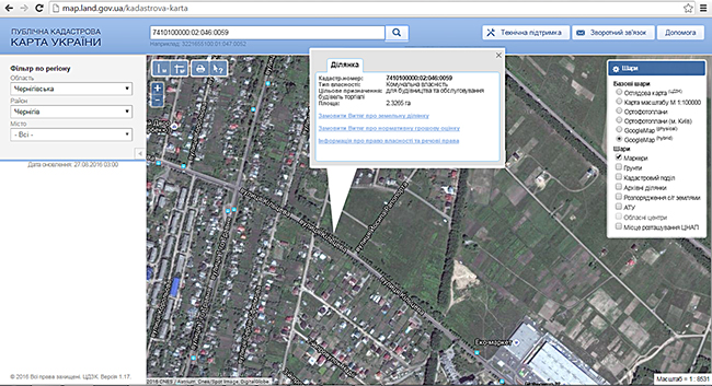Напомним, что изначально назначение участка площадью в 5,0452 га кадастровый номер 7410100000:02:046:0057, арендуемого у Черниговского городского совета ООО «Топаз» – под строительство объектов торговли.